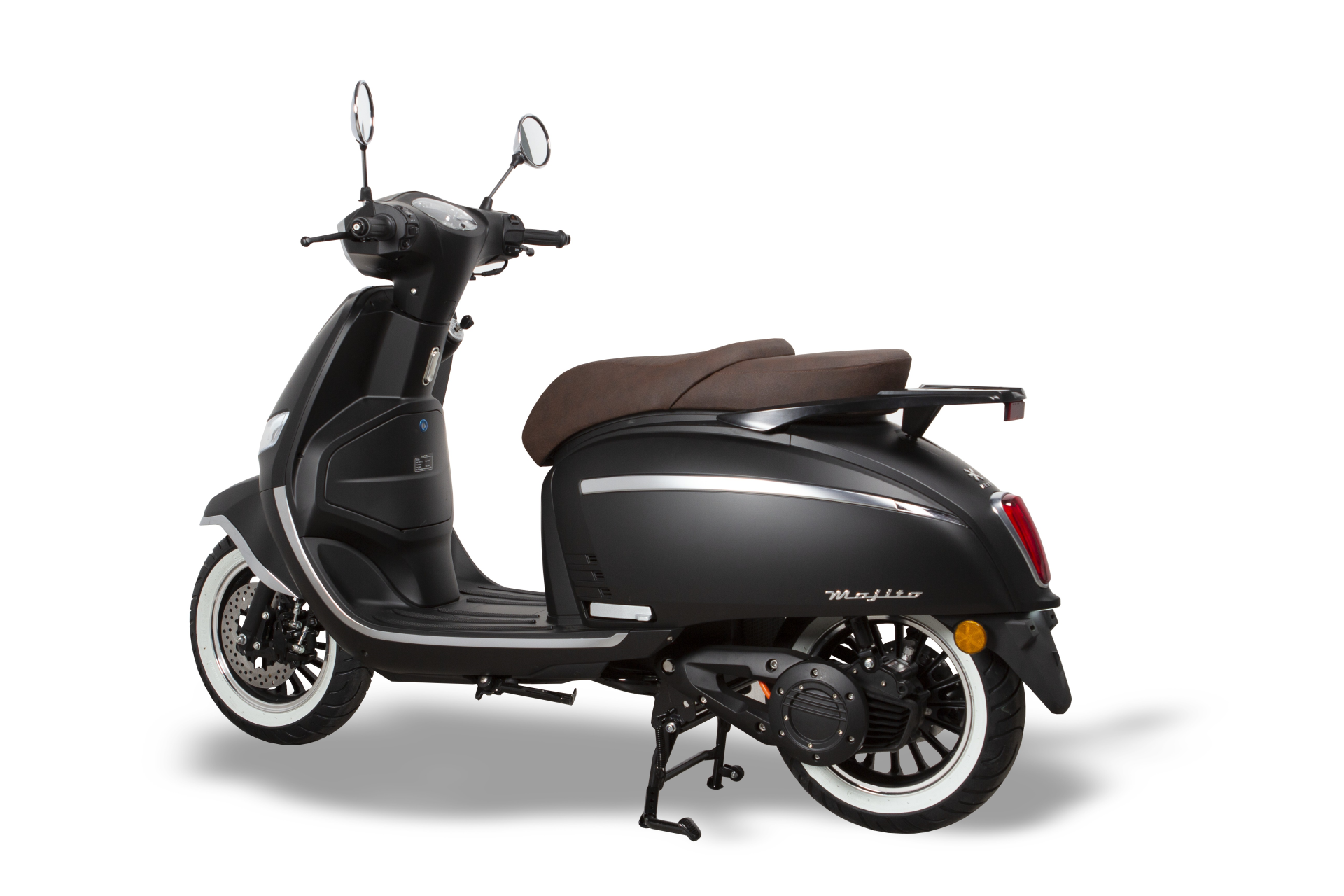 Der NEXT MOJITO verfügt über zwei herausnehmbare Lithium-Ionen-Akkus, die an jeder Steckdose aufgeladen werden können. Das nostalgische Design kombiniert moderne Technologie, einschliesslich einer Retro-Sitzbank aus nachhaltigen Materialien, einem geräumigen Handschuhfach und einem Full-Color-TFT-Display.